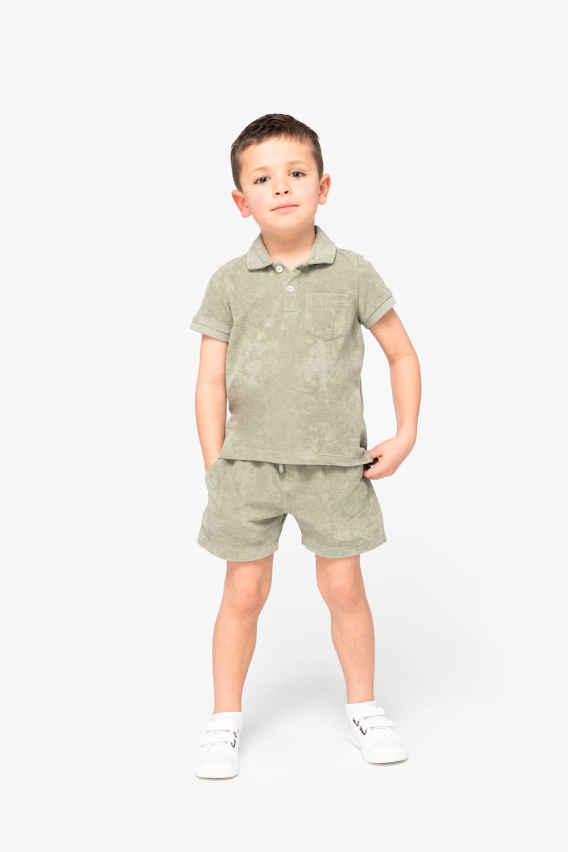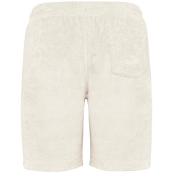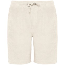 80% coton biologique / 20% polyester recyclé post-consumer. Fabriqué au Portugal. Coton peigné. Matière éponge. Lavé aux enzymes. Ceinture en matière principale avec taille élastiquée. Cordon de serrage à la taille avec embout en silicone ton sur ton. Fausse braguette fantaisie. Deux poches latérales à l'avant avec double surpiqûre à l'ouverture de poche. Poche plaquée dos, côté droit au porté. Ourlet double surpiqûre bas de vêtement.