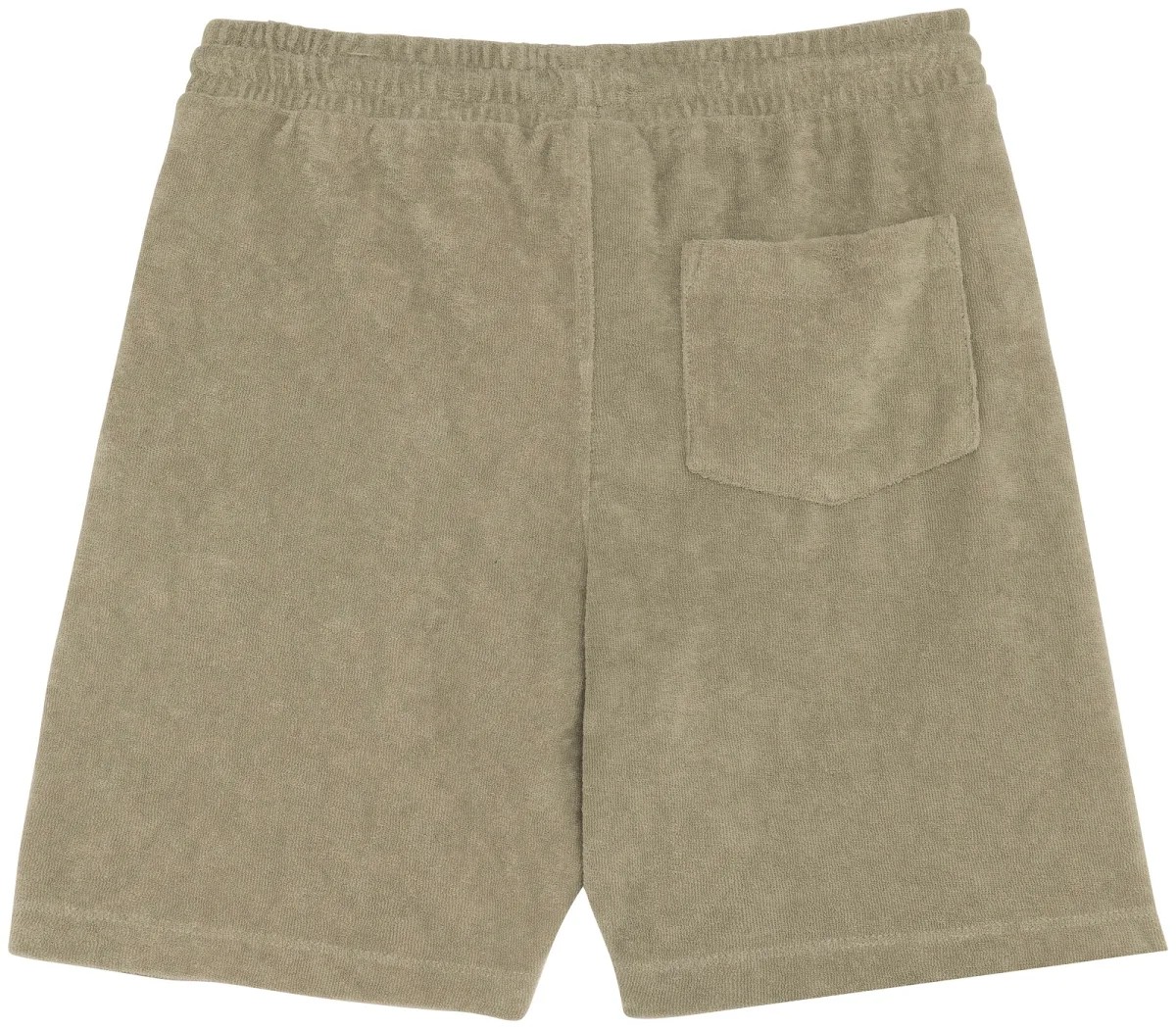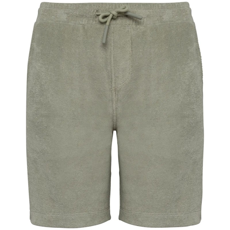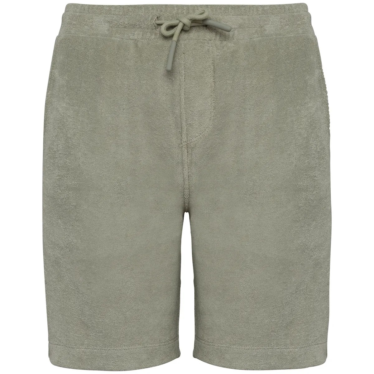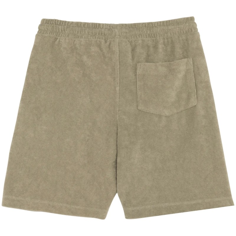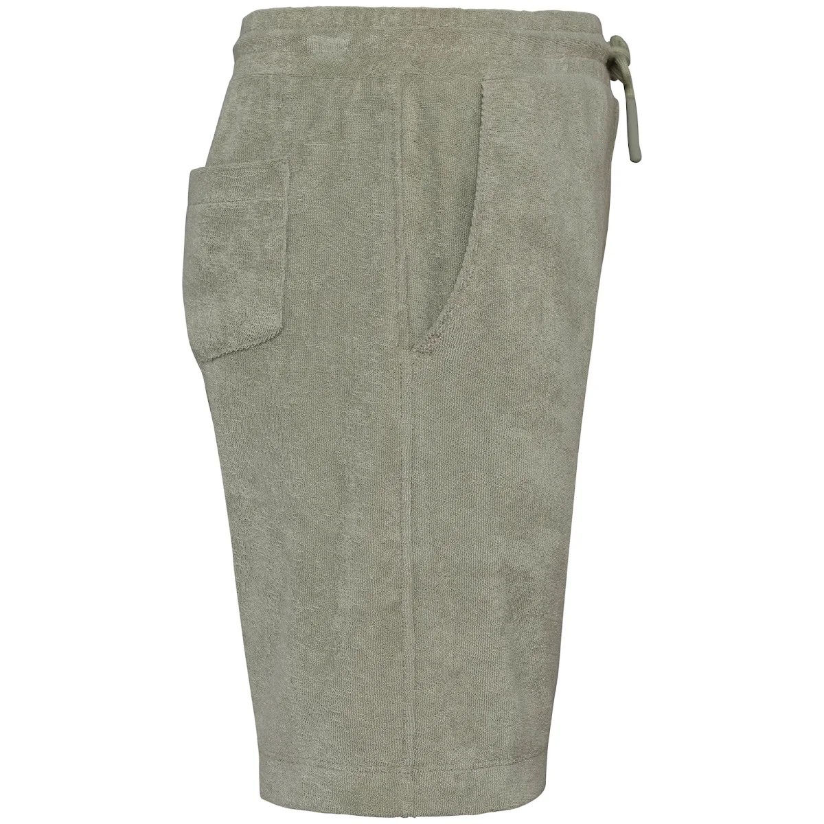 80% coton biologique / 20% polyester recyclé post-consumer. Fabriqué au Portugal. Coton peigné. Matière éponge. Lavé aux enzymes. Ceinture en matière principale avec taille élastiquée. Cordon de serrage à la taille avec embout en silicone ton sur ton. Fausse braguette fantaisie. Deux poches latérales à l'avant avec double surpiqûre à l'ouverture de poche. Poche plaquée dos, côté droit au porté. Ourlet double surpiqûre bas de vêtement.