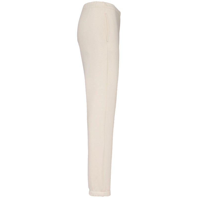 65% coton biologique / 35% polyester recyclé post-consumer. Molleton gratté 3 fils LSF (Low Shrinkage Fleece). Lavé aux enzymes. Taille et bas de jambe élastiqués. Poches latérales.