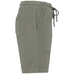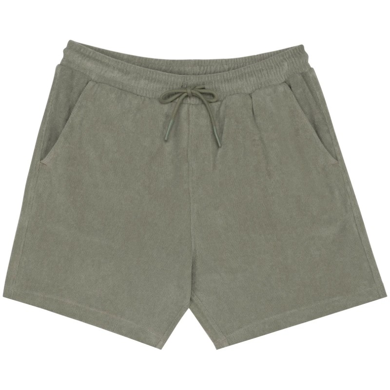 80% coton biologique / 20% polyester recyclé post-consumer. Fabriqué au Portugal. Coton peigné. Matière éponge. Lavé aux enzymes. Taille élastiquée avec cordons de serrage. Fausse braguette fantaisie. Poche plaquée dos.