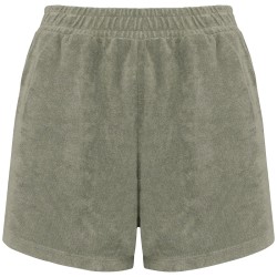 80% coton biologique / 20% polyester recyclé post-consumer. Fabriqué au Portugal. Coton peigné. Matière éponge. Lavé aux enzymes. Taille élastiquée. Deux poches latérales.