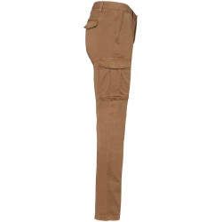 97% coton biologique / 3% élasthanne. Tissu en twill. Aspect délavé. Braguette avec boutons et zip en métal recyclé. Ceinture avec passants et finition intérieure ceinture avec un fil chaînette contrasté. Deux poches avant, une poche monnaie, une poche cachée, une poche ticket, poches à gousset avec rabat, deux poches passepoilées au dos avec rabat. Boutons en métal recyclé. Piqûre nervure fourche devant et dos pour renfort. Double surpiqûre côté et entrejambe pour renfort. Finition bas de jambes avec ourlet double surpiqûre. Vêtement teint en pièce après montage : les couleurs peuvent varier d’un produit à l’autre. Ce produit est susceptible de déteindre au contact avec des surfaces ou vêtements clairs.