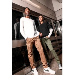 97% coton biologique / 3% élasthanne. Tissu en twill. Aspect délavé. Braguette avec boutons et zip en métal recyclé. Ceinture avec passants et finition intérieure ceinture avec un fil chaînette contrasté. Deux poches avant, une poche monnaie, une poche cachée, une poche ticket, poches à gousset avec rabat, deux poches passepoilées au dos avec rabat. Boutons en métal recyclé. Piqûre nervure fourche devant et dos pour renfort. Double surpiqûre côté et entrejambe pour renfort. Finition bas de jambes avec ourlet double surpiqûre. Vêtement teint en pièce après montage : les couleurs peuvent varier d’un produit à l’autre. Ce produit est susceptible de déteindre au contact avec des surfaces ou vêtements clairs.