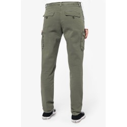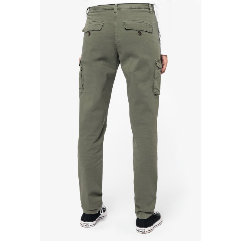 97% coton biologique / 3% élasthanne. Tissu en twill. Aspect délavé. Ceinture boutonnée avec passants et finition intérieure ceinture avec un fil chaînette contrasté. Braguette zippée en métal recyclé avec bouton de maintien intérieur. Deux poches devant et une poche cachée, poches à gousset avec rabat, deux poches dos avec rabat, ouverture passepoilée. Boutons en plastique recyclé. Piqûre nervure fourche devant et dos pour renfort. Finition bas de jambes avec ourlet simple surpiqûre. Vêtement teint en pièce après montage : les couleurs peuvent varier d’un produit à l’autre. Ce produit est susceptible de déteindre au contact avec des surfaces ou vêtements clairs.