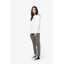 97% coton biologique / 3% élasthanne. Tissu en twill. Aspect délavé. Ceinture boutonnée avec passants et finition intérieure ceinture avec un fil chaînette contrasté. Braguette zippée en métal recyclé avec bouton de maintien intérieur. Deux poches devant et une poche cachée, poches à gousset avec rabat, deux poches dos avec rabat, ouverture passepoilée. Boutons en plastique recyclé. Piqûre nervure fourche devant et dos pour renfort. Finition bas de jambes avec ourlet simple surpiqûre. Vêtement teint en pièce après montage : les couleurs peuvent varier d’un produit à l’autre. Ce produit est susceptible de déteindre au contact avec des surfaces ou vêtements clairs.