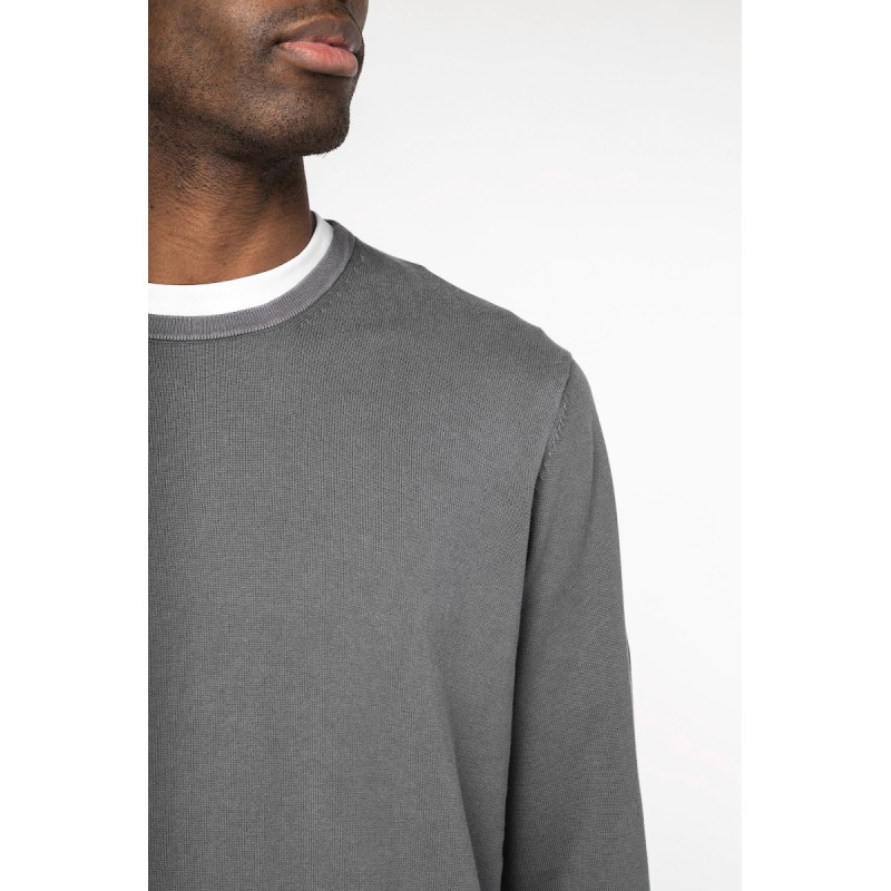 100% coton biologique. Coton peigné. Jauge 12. Coupe ajustée. Col, poignets et bas de vêtement en côte 1 x 1. Bande de propreté en matière principale. Tricoté en « Fully Fashion ». Poids moyen en taille L : 285 g. Vêtement teint après montage : les couleurs peuvent légèrement varier. Ce produit est susceptible de déteindre au contact avec des surfaces ou vêtements clairs.