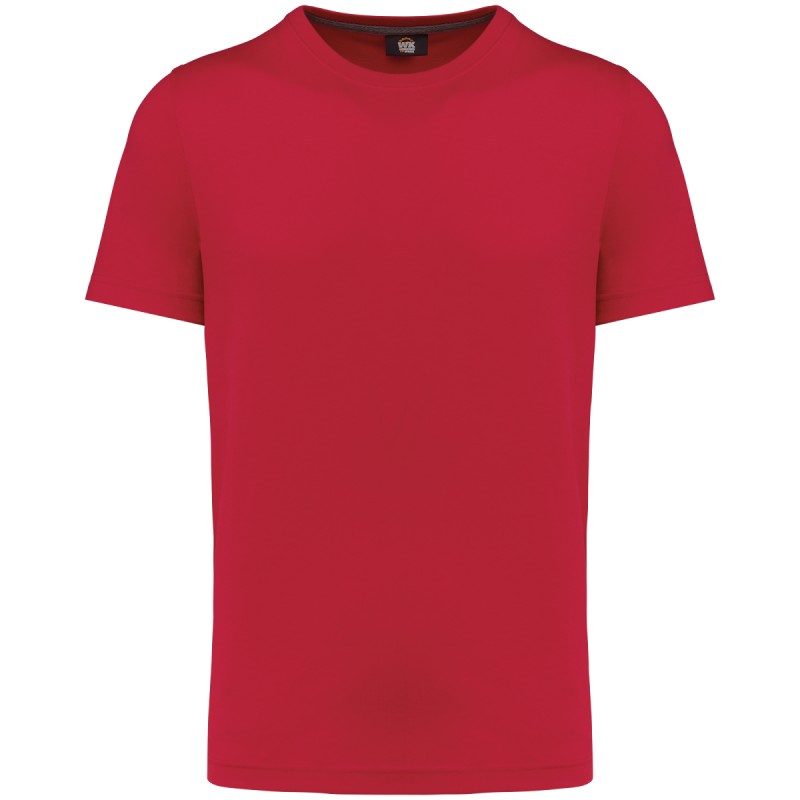 Coloris unis : 60% coton biologique / 40% polyester recyclé. Coloris Oxford Grey : 90% coton biologique / 10% viscose. Tissu doux, lavage aux enzymes. Lavable à 60°C. Coupe droite. Encolure ronde avec bord-côte 1x1. Bande de propreté chevron contrastée orange dans l'encolure (prolongement dos-épaule sauf pour le coloris blanc). Couture renforcée aux épaules. Etiquette de marque Tear Away pour faciliter la personnalisation.