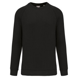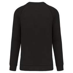 100% coton. Molleton gratté 3 fils. Lavage 60°C. Coupe droite. Manches raglan. Bande de propreté intérieur col en chevron ton sur ton. Encolure ronde. Montage bord-côtes 1x1 tubulaire pour une meilleure finition au col, bas de manches et de vêtement. Empiècement demi lune dans le col. Etiquettes en coton.
