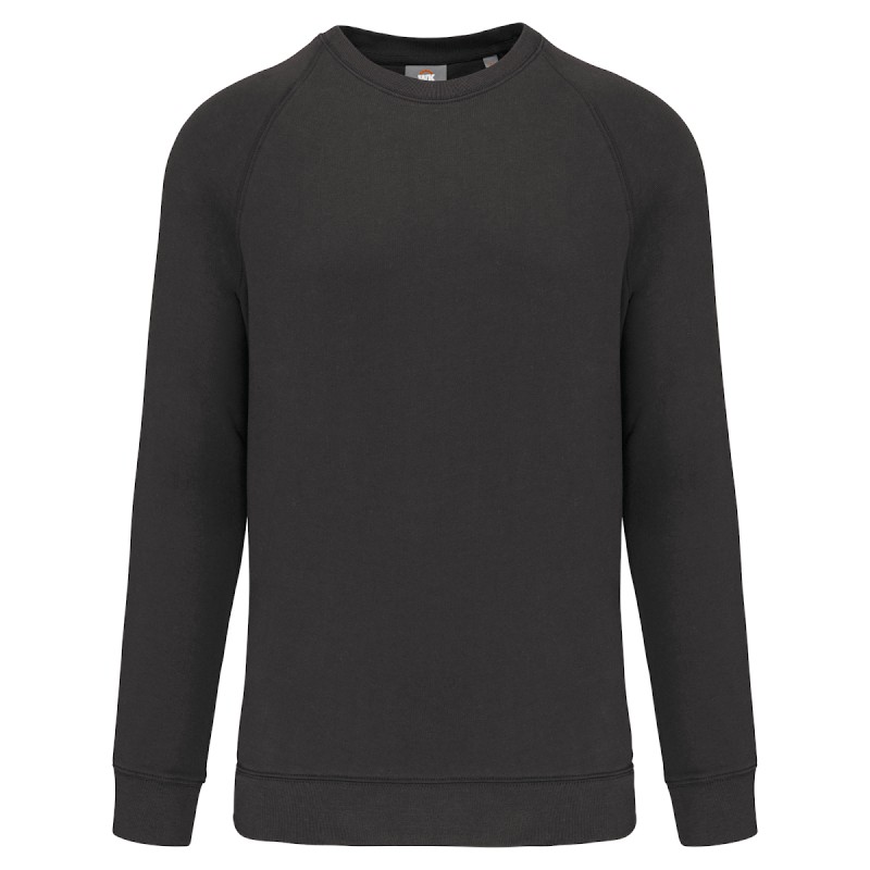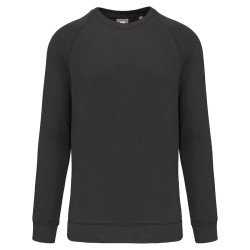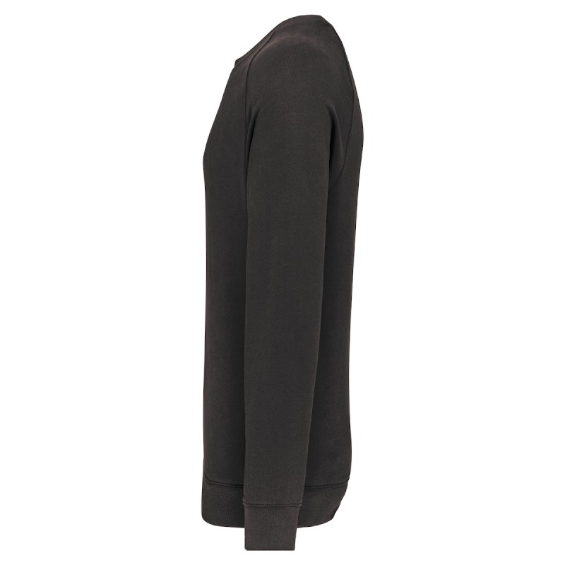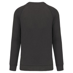 100% coton. Molleton gratté 3 fils. Lavage 60°C. Coupe droite. Manches raglan. Bande de propreté intérieur col en chevron ton sur ton. Encolure ronde. Montage bord-côtes 1x1 tubulaire pour une meilleure finition au col, bas de manches et de vêtement. Empiècement demi lune dans le col. Etiquettes en coton.