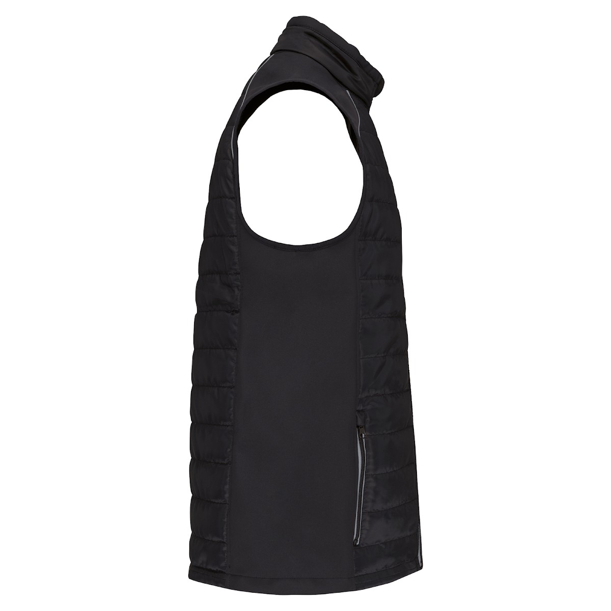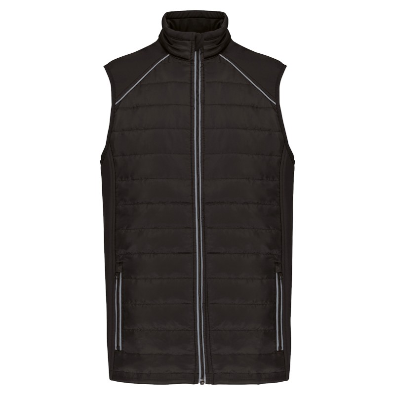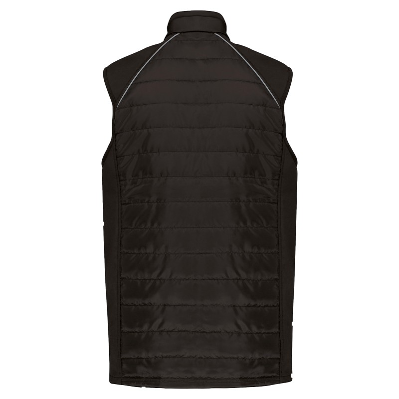 100% polyester. Softshell 2 couches, tissu extensible dans les 4 sens pour plus d'aisance avec couche intérieure polaire pour plus de chaleur sur les côtés et les épaules. Devant et dos : 100% polyester 75 g taffetas 230T avec enduction. Tissu traité déperlant. 2 poches avant zippées. 1 étiquette nom fixée intérieur gauche. Passepoil contrasté aux emmanchures sur la couture raglan et intérieur du col. Fermeture zippée avant et poches contrastées. Zip invisible de personnalisation au bas de vêtement. Ideal pour une utilisation quotidienne.