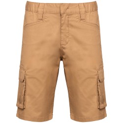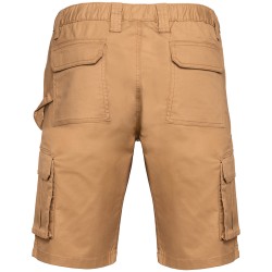 65% de coton biologique / 33% de polyester recyclé / 2% élasthanne. Tissu sergé. Coupe droite. Lavable 60°C. 2 poches ouvertes devant dont 1 poche monnaie et 2 poches à soufflet avec fermeture velcro côtés. 2 poches arrière avec rabat et fermeture velcro. Lien d'accrochage outils à gauche au porté. Ceinture élastiquée avec passants et lien d'accrochage intérieur. Fermeture zippée et boutonnée. Bouton métal protégé par un cache bouton en tissu. Coutures renforcées triple piqûres à l'entrejambe. Etiquette de marque détachable.