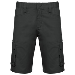65% de coton biologique / 33% de polyester recyclé / 2% élasthanne. Tissu sergé. Coupe droite. Lavable 60°C. 2 poches ouvertes devant dont 1 poche monnaie et 2 poches à soufflet avec fermeture velcro côtés. 2 poches arrière avec rabat et fermeture velcro. Lien d'accrochage outils à gauche au porté. Ceinture élastiquée avec passants et lien d'accrochage intérieur. Fermeture zippée et boutonnée. Bouton métal protégé par un cache bouton en tissu. Coutures renforcées triple piqûres à l'entrejambe. Etiquette de marque détachable.