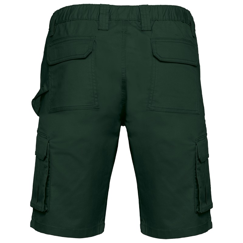 65% de coton biologique / 33% de polyester recyclé / 2% élasthanne. Tissu sergé. Coupe droite. Lavable 60°C. 2 poches ouvertes devant dont 1 poche monnaie et 2 poches à soufflet avec fermeture velcro côtés. 2 poches arrière avec rabat et fermeture velcro. Lien d'accrochage outils à gauche au porté. Ceinture élastiquée avec passants et lien d'accrochage intérieur. Fermeture zippée et boutonnée. Bouton métal protégé par un cache bouton en tissu. Coutures renforcées triple piqûres à l'entrejambe. Etiquette de marque détachable.