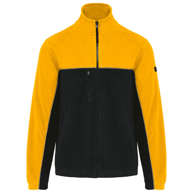 100% polyester recyclé. Micropolaire antiboulochage. Coupe ajustée. 2 poches zippées côtés + 1 poche zippée poitrine. Fermetures zip plastique ton sur ton recyclé avec tire-zip. Bande de propreté contrastée en chevron. Passepoil contrasté entre les parties du vêtement bicolores (corps et manches devant et dos). Porte-stylo élastiqué 3 compartiments sur la manche gauche. Lien d'accrochage intérieur col. Bas de manche et de vêtement élastiqué. Etiquette de marque Tear Away.