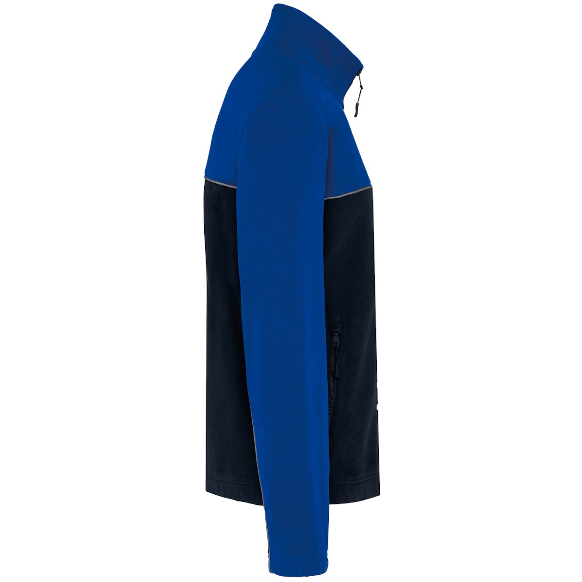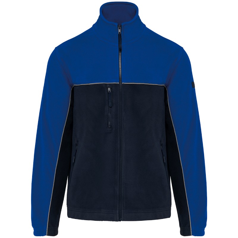 100% polyester recyclé. Micropolaire antiboulochage. Coupe ajustée. 2 poches zippées côtés + 1 poche zippée poitrine. Fermetures zip plastique ton sur ton recyclé avec tire-zip. Bande de propreté contrastée en chevron. Passepoil contrasté entre les parties du vêtement bicolores (corps et manches devant et dos). Porte-stylo élastiqué 3 compartiments sur la manche gauche. Lien d'accrochage intérieur col. Bas de manche et de vêtement élastiqué. Etiquette de marque Tear Away.