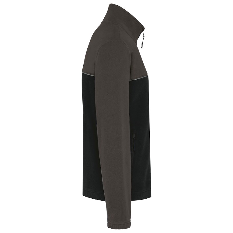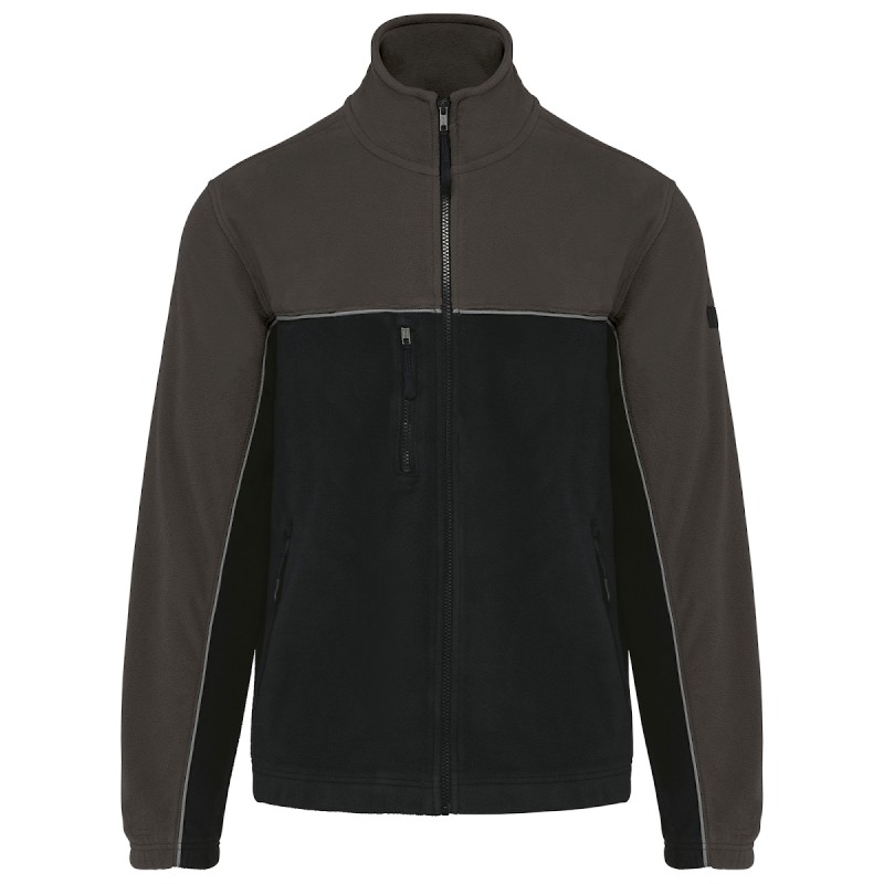 100% polyester recyclé. Micropolaire antiboulochage. Coupe ajustée. 2 poches zippées côtés + 1 poche zippée poitrine. Fermetures zip plastique ton sur ton recyclé avec tire-zip. Bande de propreté contrastée en chevron. Passepoil contrasté entre les parties du vêtement bicolores (corps et manches devant et dos). Porte-stylo élastiqué 3 compartiments sur la manche gauche. Lien d'accrochage intérieur col. Bas de manche et de vêtement élastiqué. Etiquette de marque Tear Away.