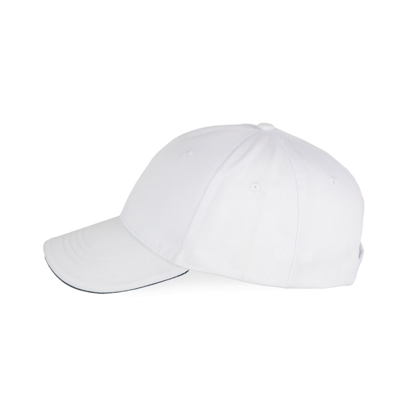 65% coton / 35% polyester. Casquette 6 panneaux. Fermeture arrière réglable par bande auto-agrippante.