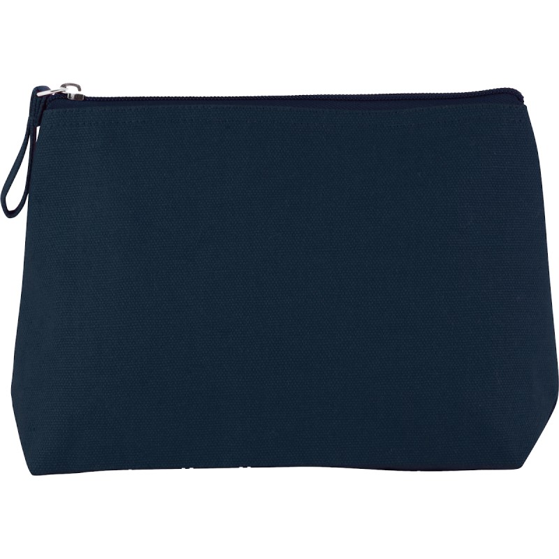 Trousse de toilette à soufflet en coton laminé (polyuréthane). Zip et tirette de la même couleur que la trousse.