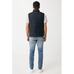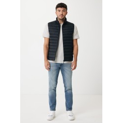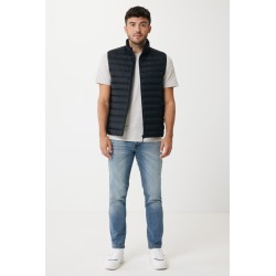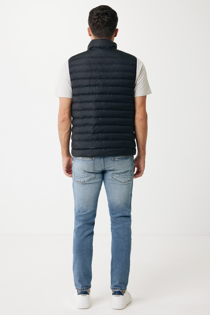 Bodywarmer coupe moyenne pour homme entièrement molletonné avec un rembourrage perlé en 100% polyester recyclé. Il est doté d'une fermeture à zip inversée sur le devant et de poches zippées pratiques dans les coutures des panneaux latéraux. Tirettes supplémentaires de couleur assortie pour un look raffiné. Les emmanchures sont dotées d'un élastique et toutes les coutures à l'intérieur sont finies proprement avec du tissu recyclé. Imprégnation déperlante sans fluor ni PFAS. L'utilisation de matériaux recyclés authentiques et les déclarations d'impact environnemental sont garanties, grâce à l'utilisation du traceur physique disruptif AWARE™ et de la technologie blockchain. En scannant le code QR, vous aurez accès à un passeport numérique dédié. 2 % des recettes de chaque produit vendu seront reversés à Water.org. Ce produit est certifié OEKO-TEX® STANDARD 100. Le bodywarmer Meru est également disponible en version femme.