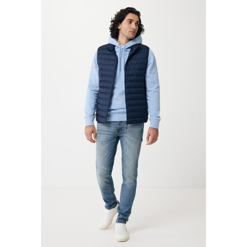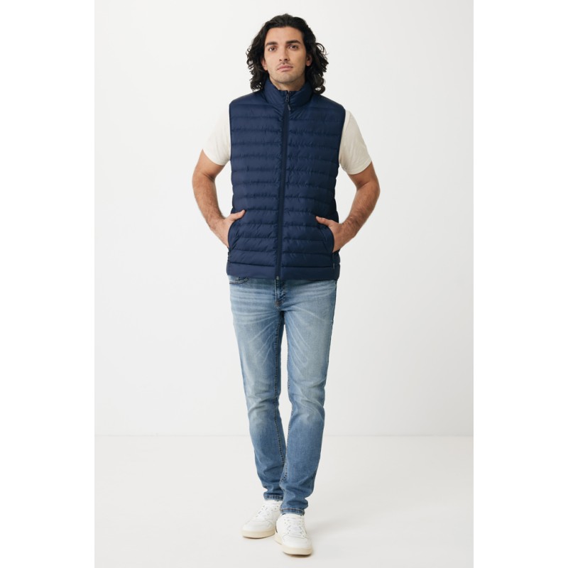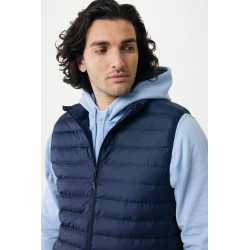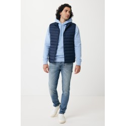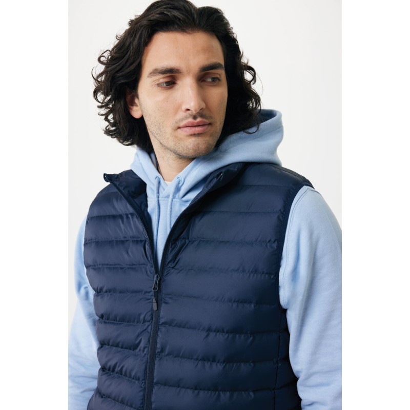 Bodywarmer coupe moyenne pour homme entièrement molletonné avec un rembourrage perlé en 100% polyester recyclé. Il est doté d'une fermeture à zip inversée sur le devant et de poches zippées pratiques dans les coutures des panneaux latéraux. Tirettes supplémentaires de couleur assortie pour un look raffiné. Les emmanchures sont dotées d'un élastique et toutes les coutures à l'intérieur sont finies proprement avec du tissu recyclé. Imprégnation déperlante sans fluor ni PFAS. L'utilisation de matériaux recyclés authentiques et les déclarations d'impact environnemental sont garanties, grâce à l'utilisation du traceur physique disruptif AWARE™ et de la technologie blockchain. En scannant le code QR, vous aurez accès à un passeport numérique dédié. 2 % des recettes de chaque produit vendu seront reversés à Water.org. Ce produit est certifié OEKO-TEX® STANDARD 100. Le bodywarmer Meru est également disponible en version femme.