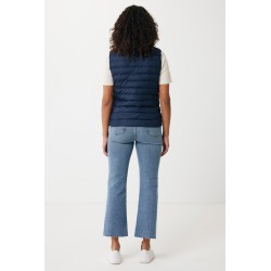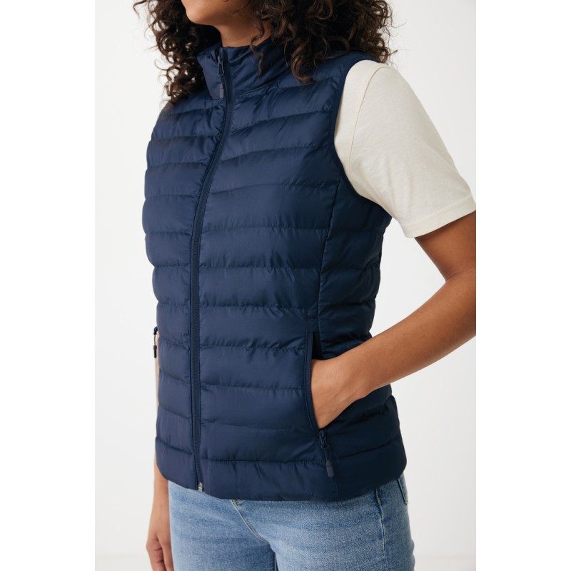 Bodywarmer coupe moyenne pour femme entièrement molletonné avec un rembourrage perlé en 100% polyester recyclé. Il est doté d'une fermeture à zip inversée sur le devant et de poches zippées pratiques dans les coutures des panneaux latéraux. Tirettes supplémentaires de couleur assortie pour un look raffiné. Les emmanchures sont dotées d'un élastique et toutes les coutures à l'intérieur sont finies proprement avec du tissu recyclé. Imprégnation déperlante sans fluor ni PFAS. L'utilisation de matériaux recyclés authentiques et les déclarations d'impact environnemental sont garanties, grâce à l'utilisation du traceur physique disruptif AWARE™ et de la technologie blockchain. En scannant le code QR, vous aurez accès à un passeport numérique dédié. 2 % des recettes de chaque produit vendu seront reversés à Water.org. Ce produit est certifié OEKO-TEX® STANDARD 100. Le bodywarmer Meru est également disponible en version homme.
