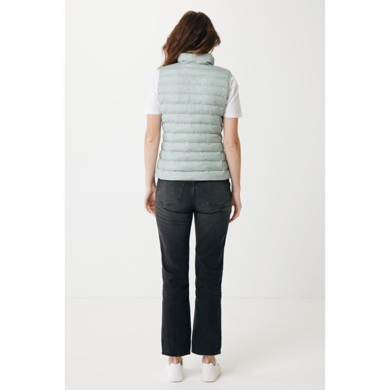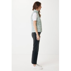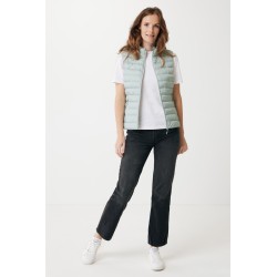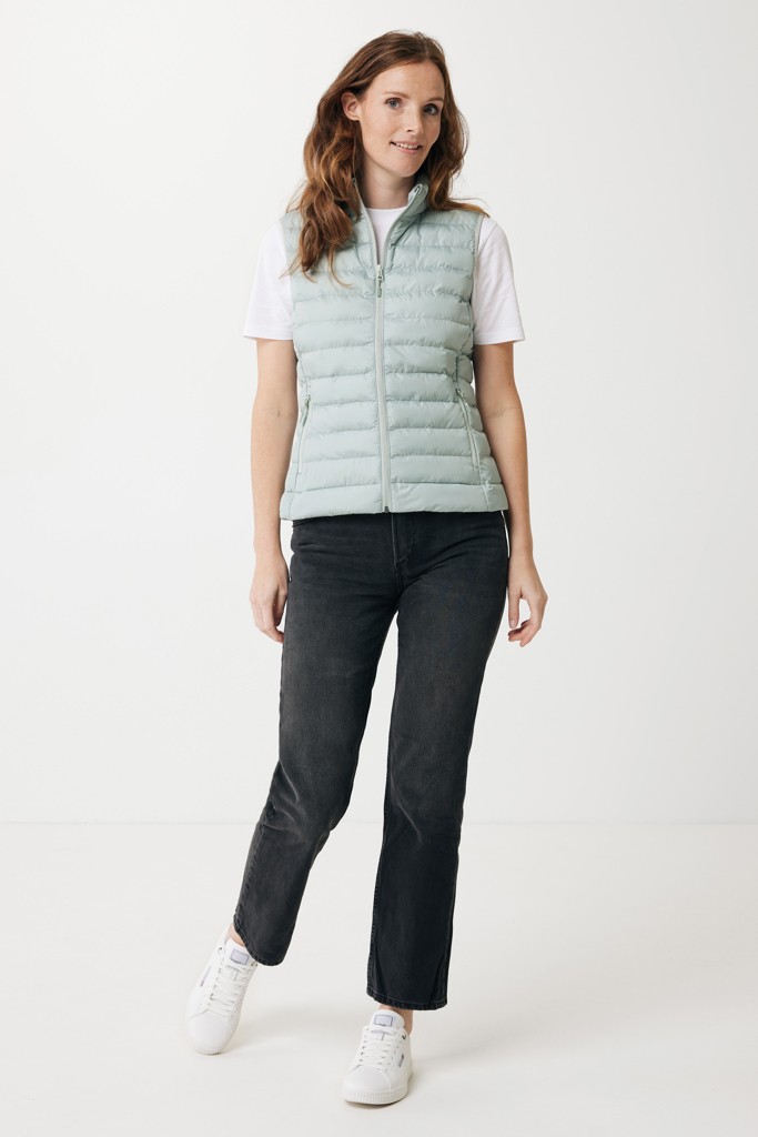 Bodywarmer coupe moyenne pour femme entièrement molletonné avec un rembourrage perlé en 100% polyester recyclé. Il est doté d'une fermeture à zip inversée sur le devant et de poches zippées pratiques dans les coutures des panneaux latéraux. Tirettes supplémentaires de couleur assortie pour un look raffiné. Les emmanchures sont dotées d'un élastique et toutes les coutures à l'intérieur sont finies proprement avec du tissu recyclé. Imprégnation déperlante sans fluor ni PFAS. L'utilisation de matériaux recyclés authentiques et les déclarations d'impact environnemental sont garanties, grâce à l'utilisation du traceur physique disruptif AWARE™ et de la technologie blockchain. En scannant le code QR, vous aurez accès à un passeport numérique dédié. 2 % des recettes de chaque produit vendu seront reversés à Water.org. Ce produit est certifié OEKO-TEX® STANDARD 100. Le bodywarmer Meru est également disponible en version homme.