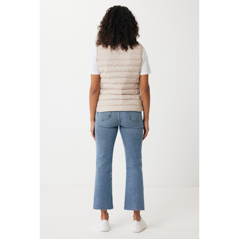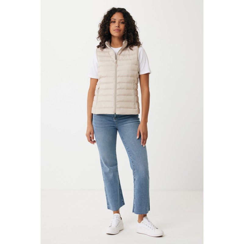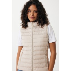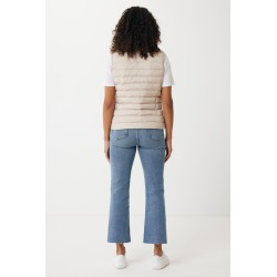 Bodywarmer coupe moyenne pour femme entièrement molletonné avec un rembourrage perlé en 100% polyester recyclé. Il est doté d'une fermeture à zip inversée sur le devant et de poches zippées pratiques dans les coutures des panneaux latéraux. Tirettes supplémentaires de couleur assortie pour un look raffiné. Les emmanchures sont dotées d'un élastique et toutes les coutures à l'intérieur sont finies proprement avec du tissu recyclé. Imprégnation déperlante sans fluor ni PFAS. L'utilisation de matériaux recyclés authentiques et les déclarations d'impact environnemental sont garanties, grâce à l'utilisation du traceur physique disruptif AWARE™ et de la technologie blockchain. En scannant le code QR, vous aurez accès à un passeport numérique dédié. 2 % des recettes de chaque produit vendu seront reversés à Water.org. Ce produit est certifié OEKO-TEX® STANDARD 100. Le bodywarmer Meru est également disponible en version homme.