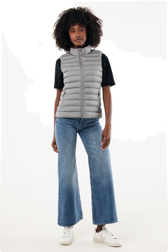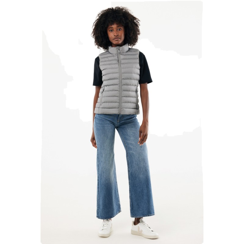 Bodywarmer coupe moyenne pour femme entièrement molletonné avec un rembourrage perlé en 100% polyester recyclé. Il est doté d'une fermeture à zip inversée sur le devant et de poches zippées pratiques dans les coutures des panneaux latéraux. Tirettes supplémentaires de couleur assortie pour un look raffiné. Les emmanchures sont dotées d'un élastique et toutes les coutures à l'intérieur sont finies proprement avec du tissu recyclé. Imprégnation déperlante sans fluor ni PFAS. L'utilisation de matériaux recyclés authentiques et les déclarations d'impact environnemental sont garanties, grâce à l'utilisation du traceur physique disruptif AWARE™ et de la technologie blockchain. En scannant le code QR, vous aurez accès à un passeport numérique dédié. 2 % des recettes de chaque produit vendu seront reversés à Water.org. Ce produit est certifié OEKO-TEX® STANDARD 100. Le bodywarmer Meru est également disponible en version homme.