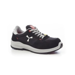 Chaussure de sécurité antistatique basse pour femme, tige en croûte hydrofuge avec inserts en tissu technique respirant, doublure interne (sur toute la surface interne) respirante et résistante à l'abrasion, 6+6 œillets metalfree, insert réfléchissant dans le contrefort, embout en aluminium pressé, orthèse plantaire amovible Ortholite X40 016, semelle en feuille textile certifiée anti-perforation, cambrion anti-entorse, bout dur en fer à cheval, première de montage en polyuréthane ultra-léger, amortisseur MASTER BALANCE en PU polyéther à haute ténacité et densité équilibrée, semelle extérieure XTRAIL GRIP en TPU avec contrefort et bout dur