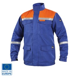 Veste multirisques Unisexe Manches réglables par velcro Col montant Fermeture zippée avec rabat 4 poches avant boutons pression Inserts réfléchissants Bas de manches réglables par velcro Coupe classique 75% coton 24% polyester 1% fibre de carbone Poids : 260 gr/m² EN ISO13688 EN 13034+A1 EN ISO11612 A1 B1 C1 D1 E1 F1 EN ISO11611 1/A1 EN 1149-5 Fabriquée en République Tchèque Traitement PROBAN pour la résistance au feu et traitement pour resistance chimique type 6 et PB 6 Fibres Antistatique