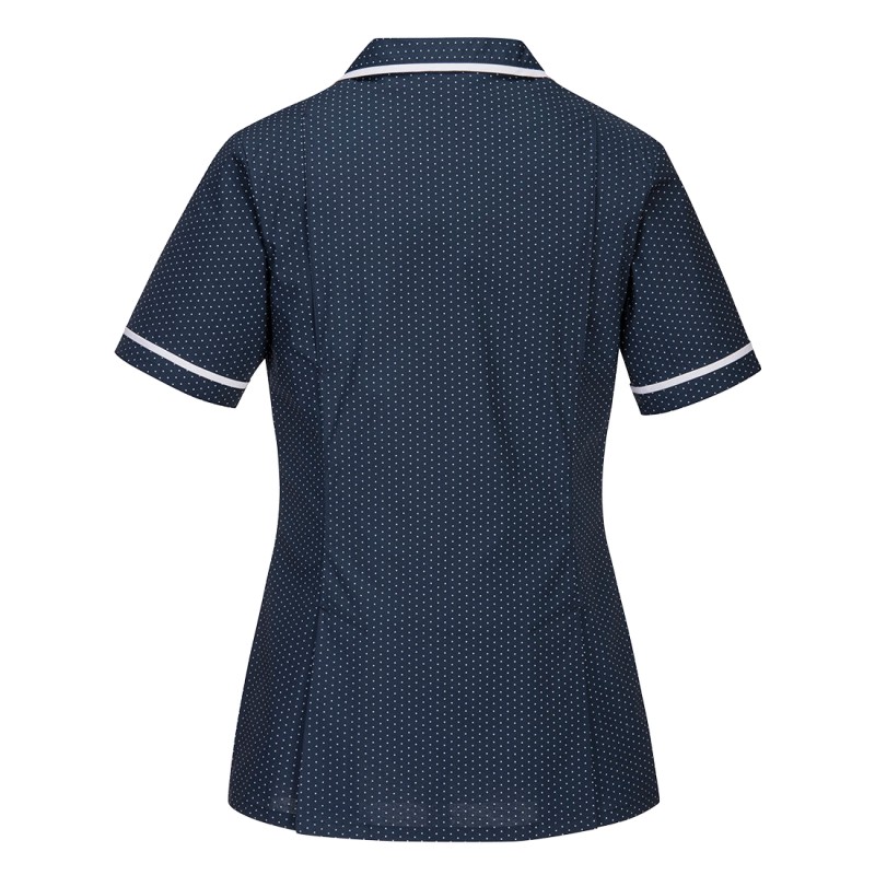 Cette tunique est confectionnée dans notre tissu sergé extensible Kingsmill conçu pour accompagner votre corps lors de votre travail quotidien. Ce modèle est un design classique à pois qui offre un look classique flatteur.