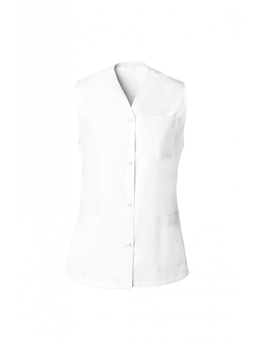 Tunique femme sans manches. Fente côtes. pressions. H 75cm. Poly/coton uni 195 grs.
