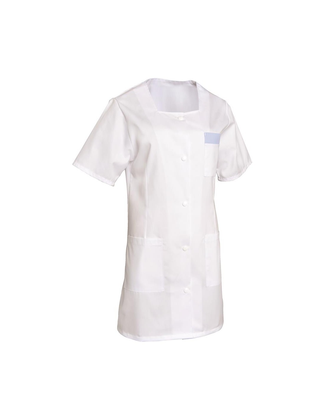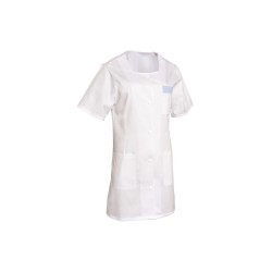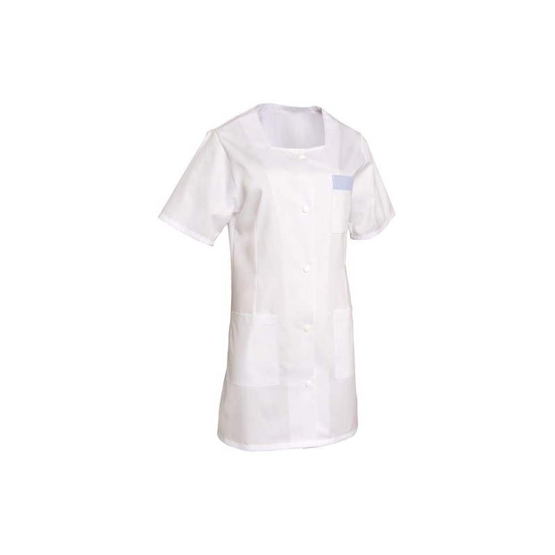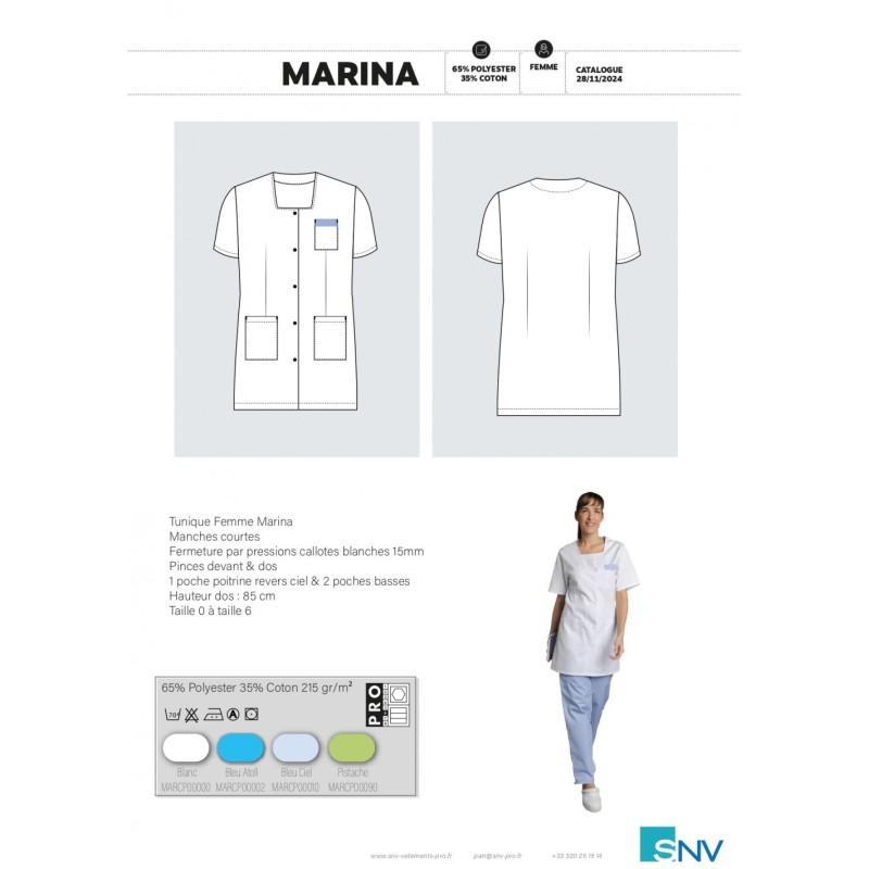 Tunique MARINA manches courtes pour Femme. H 85cm. Pressions blanches.