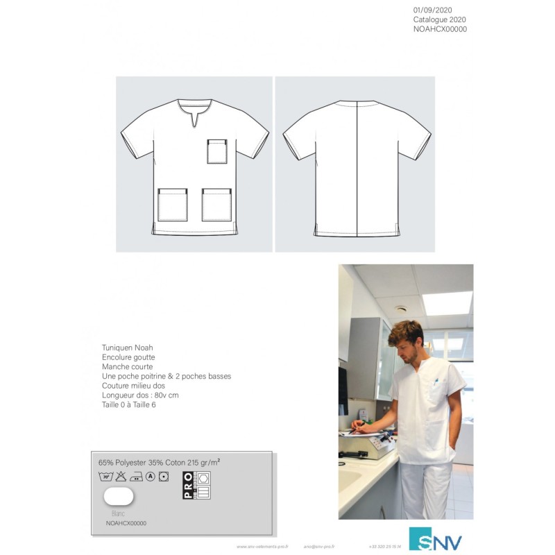 Tunique NOAH manches courtes kimono pour Homme. Encolure goutte. Fentes latérales. Hauteur 80 cm.