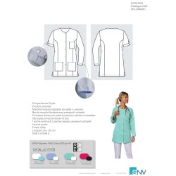 Tunique TAYLOR manches longues transformables en manches courtes à l'aide de pressions pour Femme. Passepoil contrasté entrée de poche et bas de manche. Découpe princesse devant et dos. 1 poche cœur. 2 poches basses. Fentes côtés en bas. Encolure arrondie.