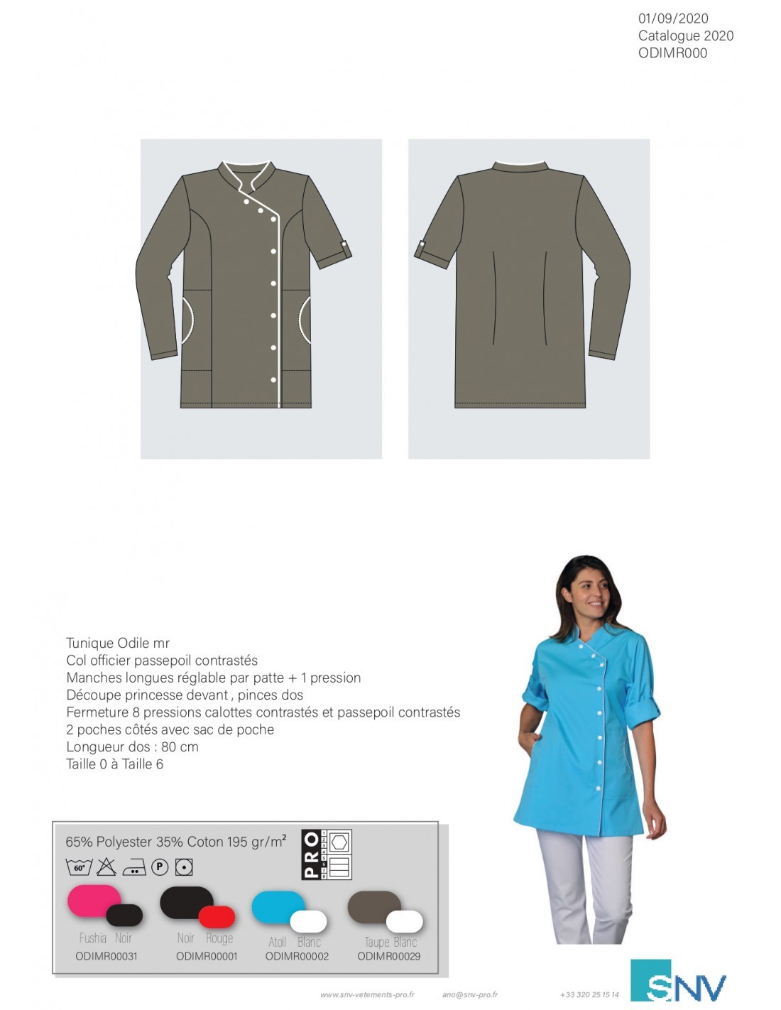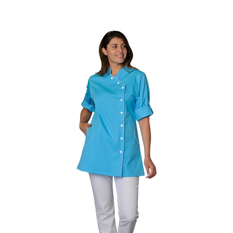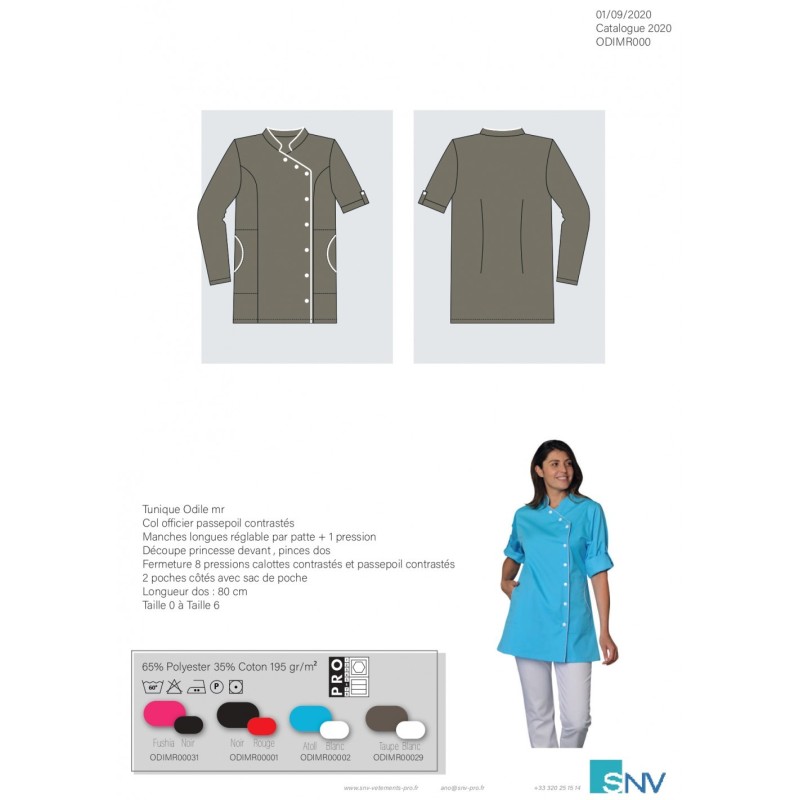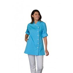 Tunique ODILE manches réglables pour Femme. 2 poches latérales. H 80cm. Pressions couleurs.