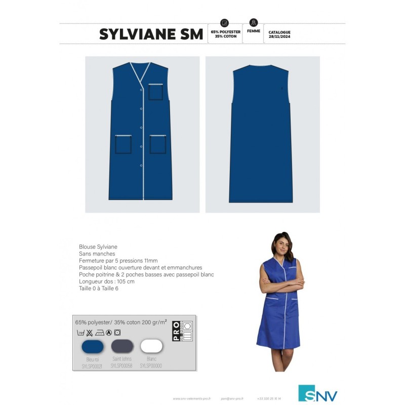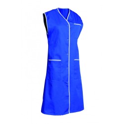 Blouse SYLVIANE sans manche pour Femme. Pressions. Gansée de blanc. H 105cm.