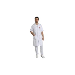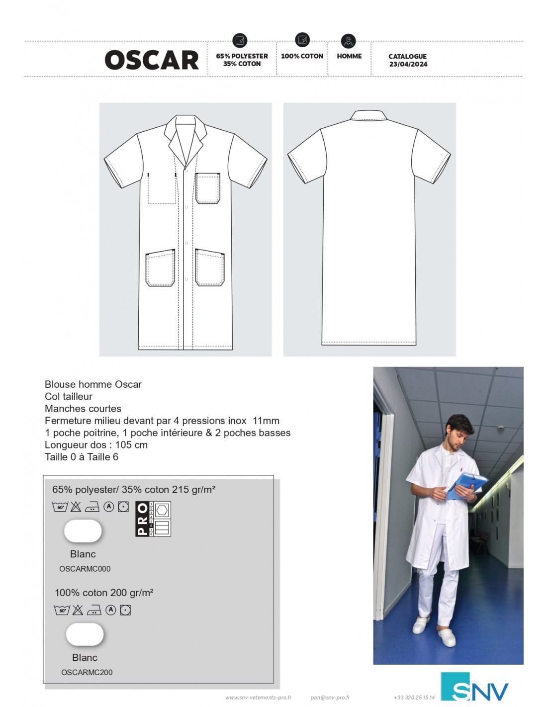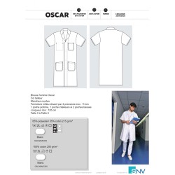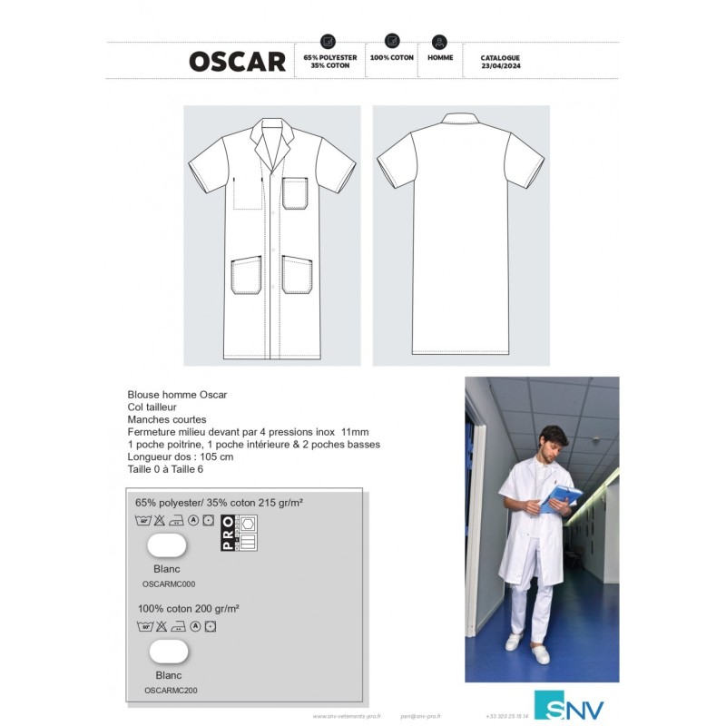 Blouse OSCAR manches courtes pour Homme. 1 poche intérieur. 3 poches extérieures. Fermeture 4 pressions. H 105cm.