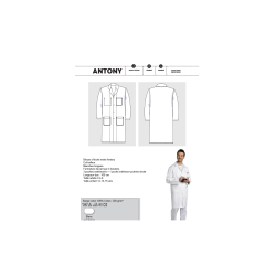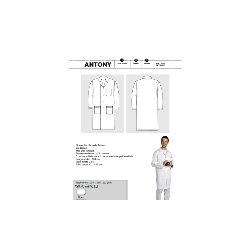 Manches longues. 4 boutons 3 poches extérieures 1 poche intérieure. H 100 cm.