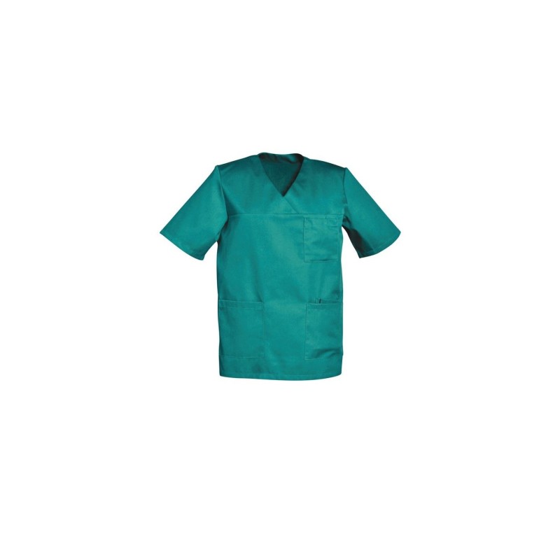 Tunique JULES manches courtes pour Homme. Encolure croisée. 3 poches dont poche basse avec 1 poche téléphone à soufflet. H 72cm.