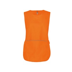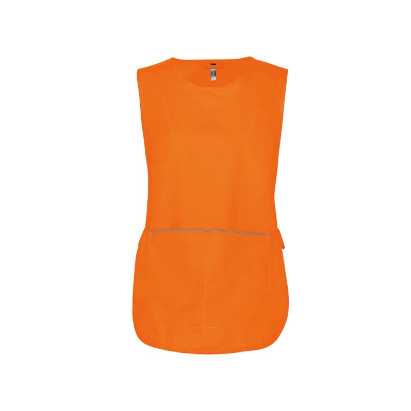 65% polyester / 35% coton. Lavage à 60°C. Tissu résistant et coupe confortable. Grande poche devant en 2 compartiments avec 1 petite poche intérieure. Pattes de réglage latérales par 2 boutons pression. Liseré contrasté haut de poche. 1 étiquette nom à l'intérieur. Bas arrondi. Longueur taille L/XL: 78 cm.