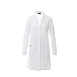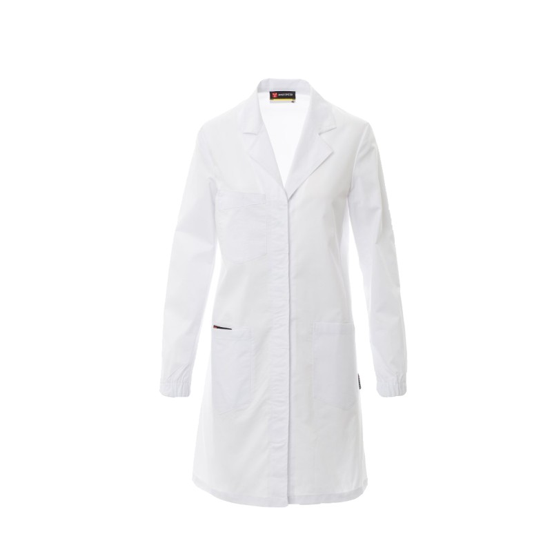 Blouse pour femme, avec col à revers classique, fermée sur le devant par des boutons automatiques, fermeture à boutons couverte, une poche appliquée sur la poitrine avec un compartiment porte-stylo, deux poches appliquées à la taille, une petite poche pour smartphone, empiècement dos lisse, fente à l'arrière pour faciliter les mouvements, manches longues avec élastiques serre-poignet.