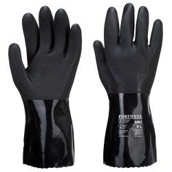 Gant chimie en PVC ESD de qualité supérieure. Conçu pour une utilisation dans des zones où une accumulation d'électricité statique pourrait être un risque. Excellente dextérité avec un bon grip grâce à la finition sablée de la paume. La doublure sans couture assure confort et flexibilité.