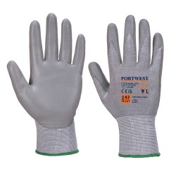 Gant coupure B, paume enduite PU, jauge 18 offrant une dextérité supérieure et une sensation de «seconde peau». Le revêtement de la paume en PU offre une adhérence sécurisée dans des environnements de manipulation huileux et secs. Ce gant est extrêmement résistant avec une doublure douce et respirante. Le poignet tricot élastique offre un ajustement sûr et confortable.