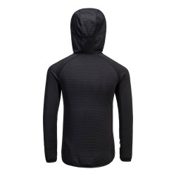 Ce haut thermique à capuche est fabriquée à partir d'un tricot lisse avec une face intérieure en polaire gaufrée qui crée de la chaleur tout en évacuant l'humidité et en étant respirante. Finition antibactérienne, conçue pour empêcher la formation d'odeurs et la prolifération de bactéries Capuche et col allongés pour une sensation de peau tendue, avec des trous de respiration pour plus de confort. Le haut thermique à capuche est doté de coutures plates, placées à l'écart des épaules pour éviter l'abrasion de la peau.