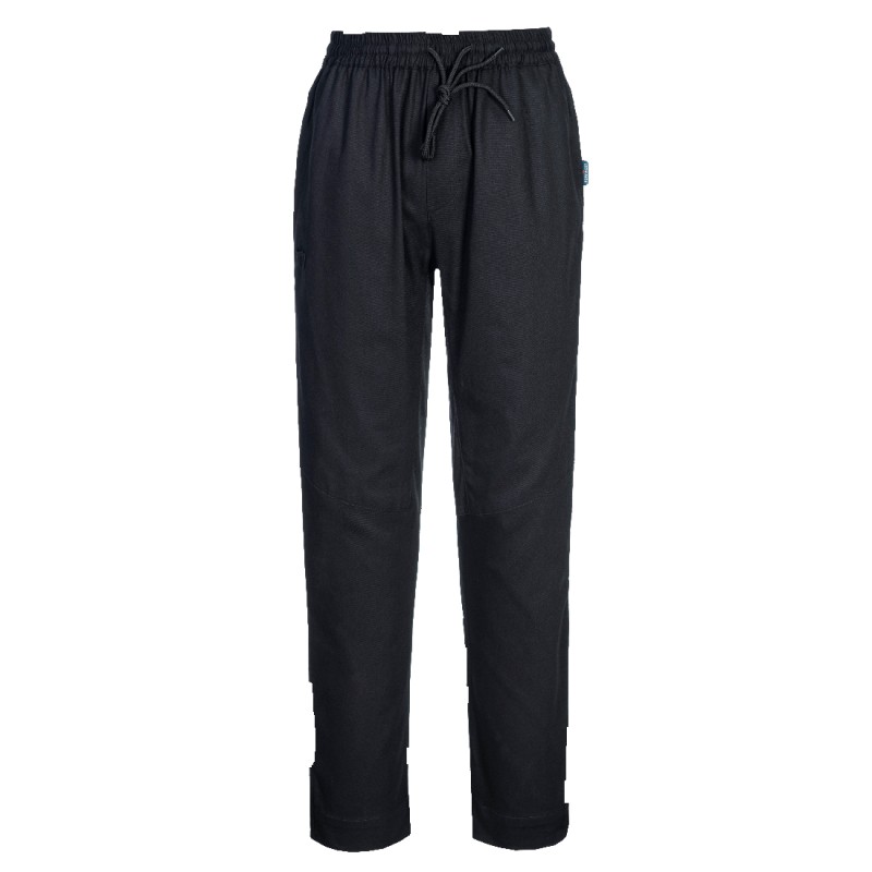 Un pantalon de chef 100 % coton qui offre un confort et une souplesse incroyables. Conçu avec des panneaux extensibles pour une plus grande liberté de mouvement, le panneau arrière MeshAir au niveau des genoux et le tissu 100 % coton garantissent la respirabilité du vêtement. Les autres caractéristiques comprennent des genoux préformés, un gousset à l'entrejambe, et de multiples poches idéales pour ranger en toute sécurité téléphones, stylos et outils.