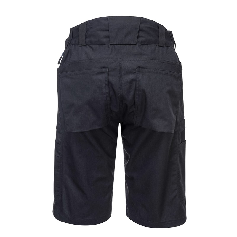 Bermuda de travail contemporain fabriqué dans un tissu anti-déchirure très résistant qui s’étire lorsque vous vous déplacez. Doté de nombreuses fonctionnalités, notamment un soufflet à l'entrejambe, une élastication latérale et une taille haute à l'arrière qui garantit une protection dans toutes les positions de travail. Les poches de cuisse multifonctionnelles offrent un stockage sécurisé des téléphones, des stylos et des outils.