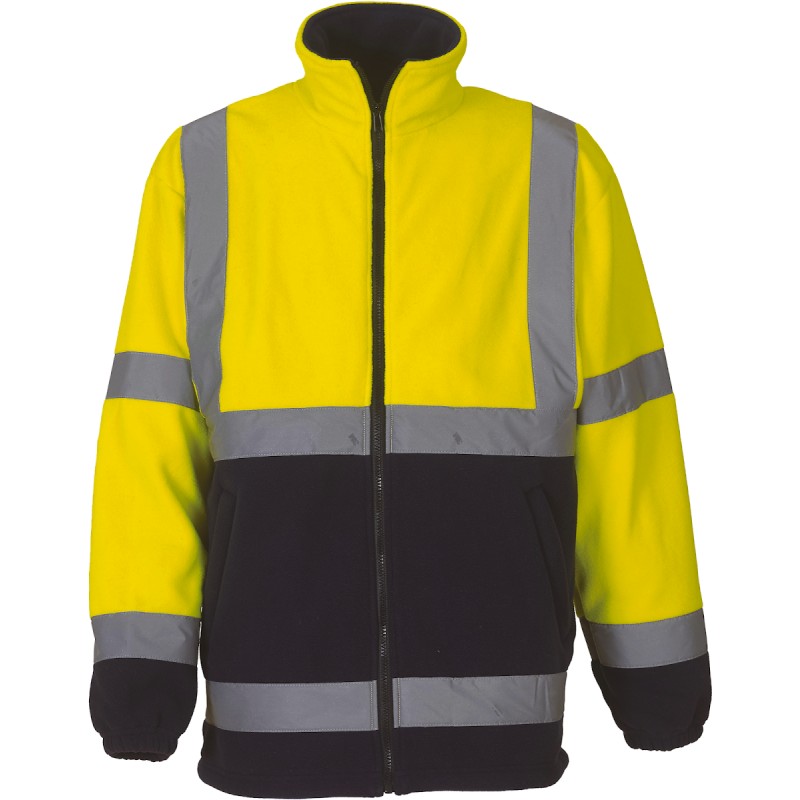 100% polyester. Deux bandes réfléchissantes 3M autour du corps et des bras et une sur chaque épaule. Zip sur toute la longueur à l'avant. Poignets et taille élastiqués. Deux poches inférieures passepoilées. Col montant. Conforme à la norme EN ISO20471:2013 catégorie 3 et à la norme relative aux "Vêtements de Haute Visibilité" des chemins de fer UK GO/RT 3279 Issue 8:2013 (Hi-Vis orange et Hi-Vis orange/Navy).