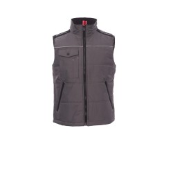 Gilet unisexe à zip de 8 mm en plastique avec curseur en métal, arrière profilé, deux grandes poches extérieures zippées, grande poche de poitrine pour smartphone, anneau porte-badge, passepoil réfléchissant sur la poitrine et au dos. Intérieur : matelassé et doublure haute densité, intérieur de col en polaire, une poche.