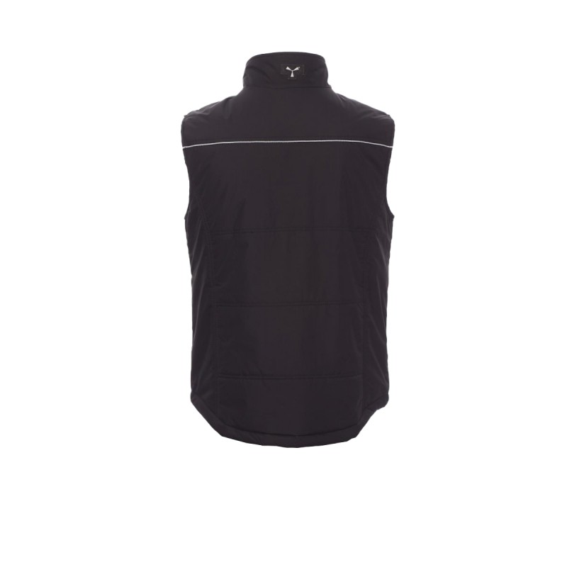 Gilet unisexe à zip de 8 mm en plastique avec curseur en métal, arrière profilé, deux grandes poches extérieures zippées, grande poche de poitrine pour smartphone, anneau porte-badge, passepoil réfléchissant sur la poitrine et au dos. Intérieur : matelassé et doublure haute densité, intérieur de col en polaire, une poche.